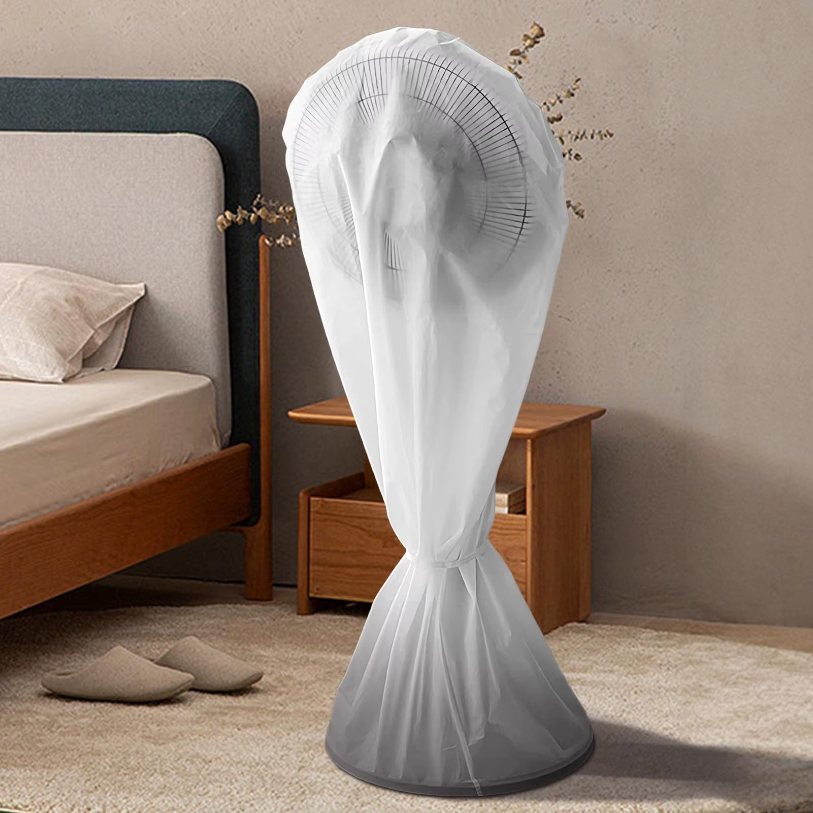 Simply stretch over your fan, tie the base if needed, and remove effortlessly when it’s time to use again.